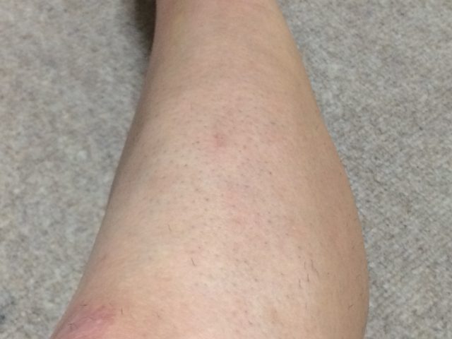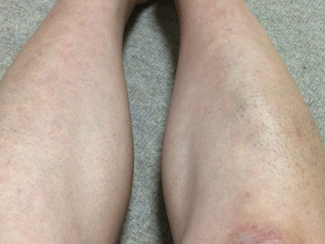 除毛クリームが途中でなくなったので十分塗れなかった。毛が残っている。↓